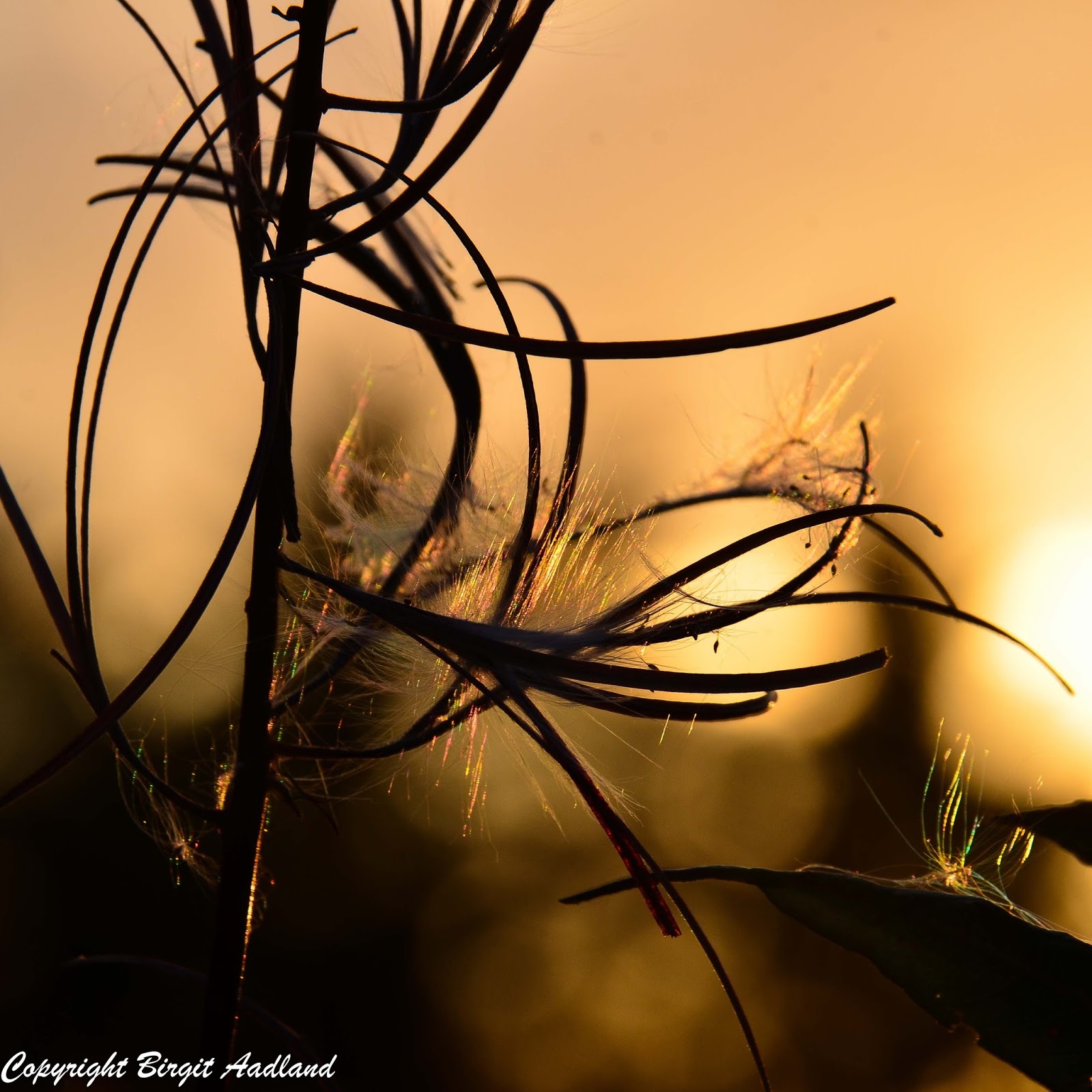 Kveldssola står lavt, og skin i spindelvevet så det ser ut